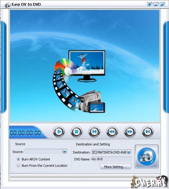 Огромная армия владельцев цифровых пленочных видеокамер после отснятия видеоматериала сталкиваются с проблемой как проще "сбросить" фильм с пленки Mini DV на обычный DVD диск для хранения или просмотра на бытовом DVD плеере. Новый продукт от известного производителя позволяет это сделать легко и просто. Помимо простой конвертации программа позволяет делать копию DV пленки, добавлять меню, титры и разделы в DVD диск, отрегулировать формат, размер и качество результата. Записывает на болванки: DVD-R/RW, DVD+R/RW, DVD-R DL, DVD+R DL и DVD-RAM. -Теперь вы можете наслаждаться снятым фильмом на DVD плеере.