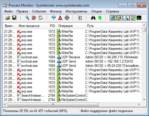 Программа Process Monitor является усовершенствованным инструментом отслеживания для Windows, который в режиме реального времени отображает активность файловой системы, реестра, а также процессов и потоков. В этой программе сочетаются возможности двух ранее выпущенных программ от Sysinternals: Filemon и Regmon, а также огромный ряд улучшений, включая расширенную и безвредную фильтрацию, всеобъемлющие свойства событий, такие как ID сессий и имена пользователей, достоверную информацию о процессах, полноценный стек потока со встроенной поддержкой всех операций, одновременную запись информации в файл и многие другие возможности. Эти уникальные возможности делают программу Process Monitor ключевым инструментом для устранения неполадок и избавления от вредоносных программ.