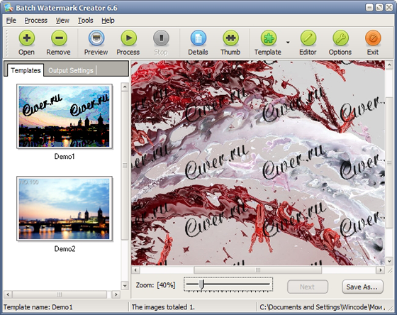Batch Watermark Creator - программа для наложения "водяных" знаков на графические изображения. "Водяные" знаки могут быть размещены в любой части изображений, для них можно установить уровень прозрачности, добавить тень. Программа позволяет также выполнять несложные операции по корректировке изображений настраивать яркость, насыщенность, оттенки. Есть возможность пакетного наложения "водяных" знаков на изображения.