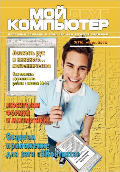Журнал "Мой друг компьютер" - для обычных пользователей компьютера. Он рассказывает, как выбрать компьютерную технику, установить и настроить разные программы, модернизировать компьютер с минимальными финансовыми затратами, защитить от вирусов и не стать жертвой хакеров.