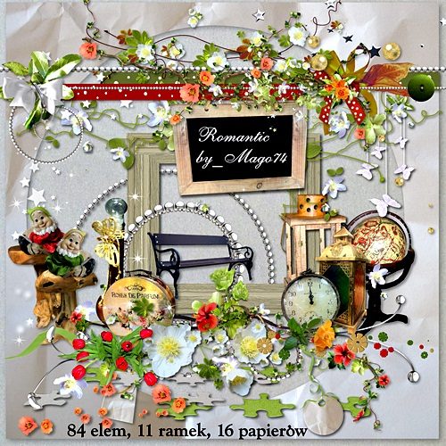 Удивительно красивый скрап набор включает: 84 элемента PNG, 11 рамок PNG, 16 фонов JPG 3600х3600.