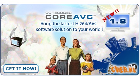 Новая версия H.264 видео кодека разработанного CoreCodec. Кодек CoreAVC базируется на MPEG-4 ч.10 стандарте, и является одним из кодеков используемых в Blu-ray (BD) и в High Definition DVD (HD-DVD). AVC/H.264 - стандарт следующего поколения видео и CoreAVC признаётся одним из лучших и эффективных декодеров H.264. Эффективность CoreAVC заключается в программном подходе к декодированию, он не полагается на аппаратные средсва ПК для увеличения производительности при воспроизведении H.264 видео в отличии от других решений подобного рода. Имеется поддержка деинтерлейсинга на программном уровне.