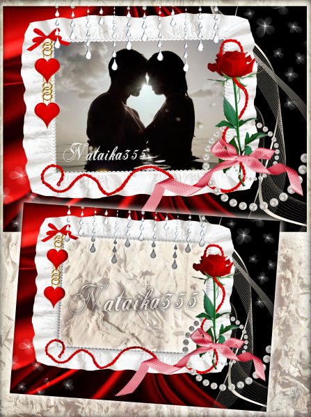 Многослойная рамка с розой, кружевами для оформления романтического фото.