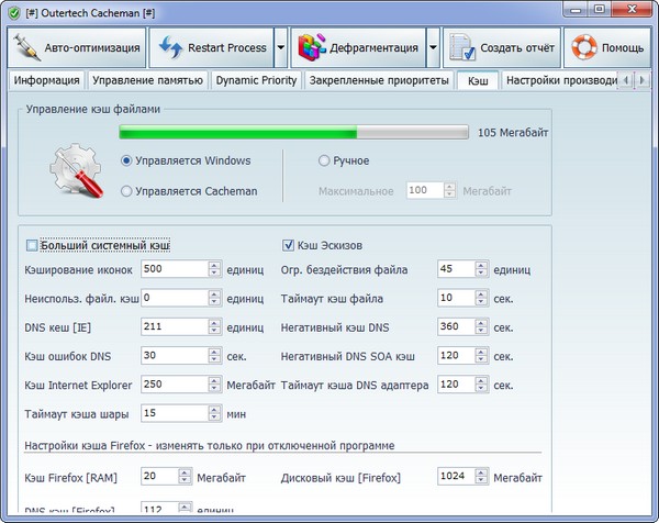Новая версия программы CachemanXP, позволяющая увеличить скорость и стабильность работы компьютера, оптимизируя кэши, освобождая RAM и тонко настраивая множество параметров системы. Программа умеет оптимизировать дисковый кэш, кэш CD-приводов, Icon Cache, периодически очищает память, изменяет некоторые настройки операционной системы, отслеживает изменения важных параметров, отображает информацию в графическом виде, может генерировать отчеты.