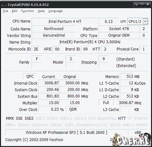 Выдает информацию об установленном в компьютере процессоре, чипсете, RAM, BIOS и устройствах PCI, причем полученные сведения можно сохранить в виде текстового или графического файла. Кроме этого, на AMD K6/K7/K8 позволяет менять множители напряжений. Поддерживаются как 32-, так и 64-битные процессоры (AMD64/EM64T). Работает без инсталляции.
