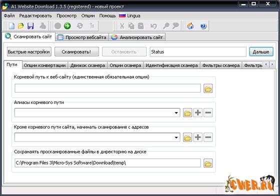 Программа, которая позволяет скачивать сайты целиком и в дальнейшем просматривать их содержание, не подключаясь к Интернету. Особенности: конфигурируемый сканер; определение, какие типы файлов будут скачиваться, какие директории будут сканироваться и т.д. Сканер также может двигаться по сайтам, на которых необходима авторизация (ввод логина и пароля), используя сессии или куки (sessions, cookies).