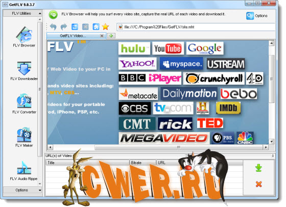 GetFLV Pro - новая версия программы, которая является полностью интегрированным набором мощных утилит для загрузки, управления, конвертирования, восстановления и воспроизведения FLV видео файлов.