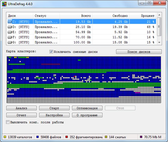 UltraDefrag - программа для быстрой дефрагментации диска (дефрагментация производится в режиме ядра). Имеет три интерфейса: графический, собственный и консольный.
