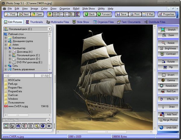 Picture Viewer Max - многофункциональный и навороченный просмотрщик графических файлов. Может просматривать огромное количество форматов, воспроизводить видео и аудио, позволяет проводить редактирование изображений и многое другое...