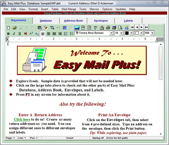 Easy Mail Plus напечатает и отправит ваше сообщение по факсу или по электронной почте, подготовит конверт и напечатает марку. И лучше всего то, что вы не меняете настройки вашего принтера! Встроенная функция импорта использует простую технологию перетаскивания для того, чтобы быстро создавать Address файлы с ваших существующих файлов с данными.