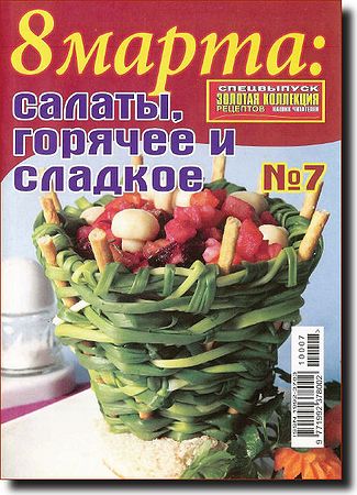 Всю прекрасную (и лучшую!) половину человечества - с замечательным праздником! Специальное приложение к газете "Золотая коллекция рецептов" составляется на основе писем читателей, а потому вы не встретите здесь рецептов, кочующих из книжки в книжку, из журнала в журнал, а только - оригинальные, самобытные идеи из гущи народа.
