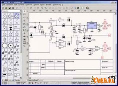 Графический редактор с элементами, позволяющими легко рисовать электрические схемы. Очень простой и интуитивно понятный интерфейс. Может использоваться как текстовый редактор, легко составляются таблицы. Для рисования электрических схем имеется несколько библиотек, элементы которых могут легко редактироваться и добавляться, есть функция автоматической нумерации элементов, привязка линий к выводам элементов, группировка элементов, привязка к сетке. Возможность рисования линий под определенным углом, поворот элементов, вставка рисунка, экспорт в форматы jpg, bmp. Удобный вывод на печать.